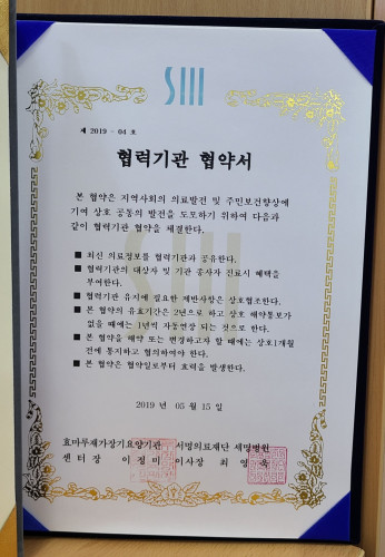 협력기관(세명병원, 중앙병원)   효마루 재가센터는 경산의 중심 병원인 세명병원과 중앙병원에 협약을 맺고 있으며, 어르신의 건강관리에 ..