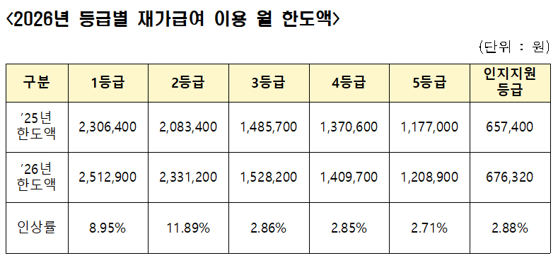 노인장기요양보험법 제28조(장기요양급여의 월 한도액) 및 노인장기요양보험법 시행규칙 제22조 (장기요양급여의 월 한도액)에 의거,