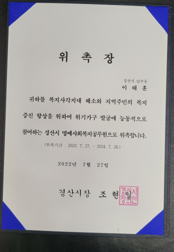 지역사회기부  효마루재가장기요양기관은 지역사회 복지사각지대 해소와 지역주민의 복지증진 향상을 위하여 위기가구 발굴에 능동적으로..